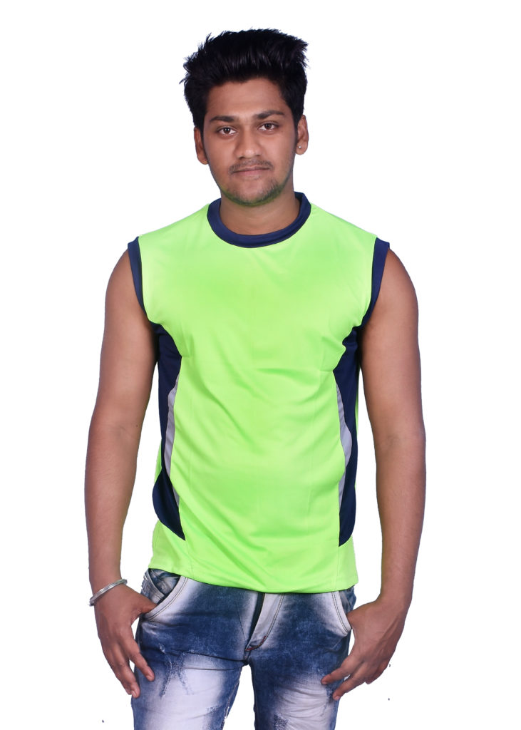 Sleeveless Sports Tshirt for Swimming, Jogging, Yoga, Gym, Workout, Exercise, Fitness, Cricket, Football Training – Green & Blue