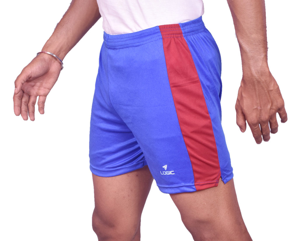 Soft Lycra Athletic Side Cut Half Pant Shorts for Men’s Gym, Running, Cycling, Swimming, Basketball, Yoga, Football, Tennis, Badminton & Many More Sports, Color Blue and Red Side Border